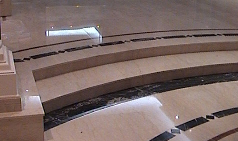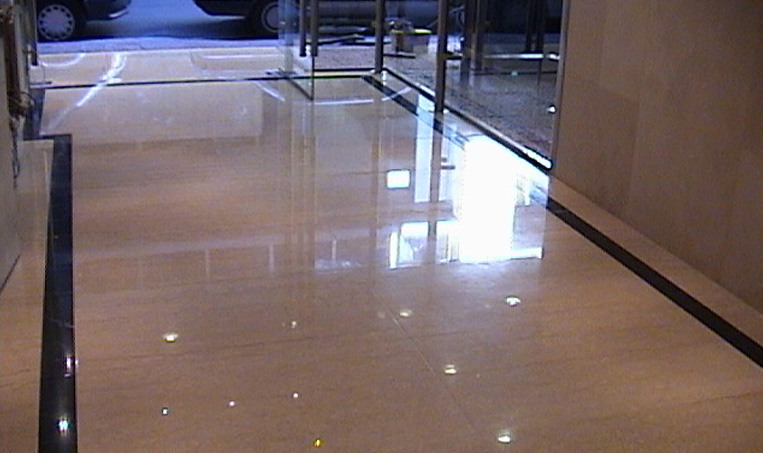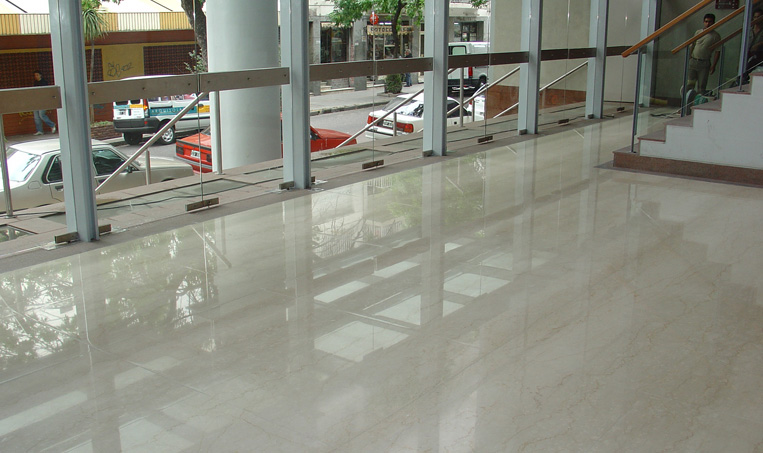 With special machinery we establish a termochemical reaction using different acids, which make a reaction on the surface with the calcium carbonate (natural composite of the marble), obtaining in that way a most shinny surface and harder too. It blockades the pore making the floor nonslip and stronger than it was.